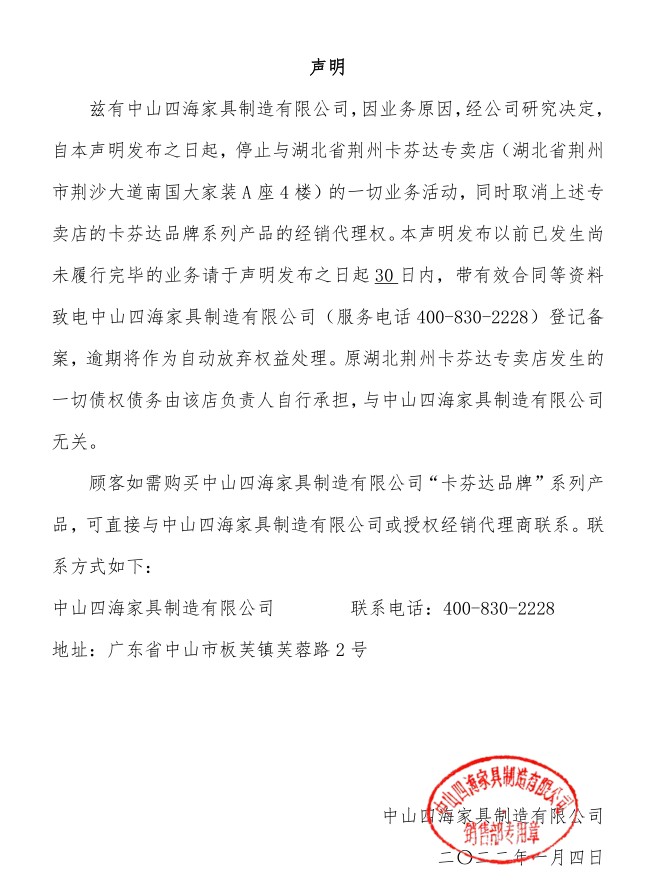 關(guān)于公司屬下品牌卡芬達家居及各子系列產(chǎn)品調(diào)價的通知
